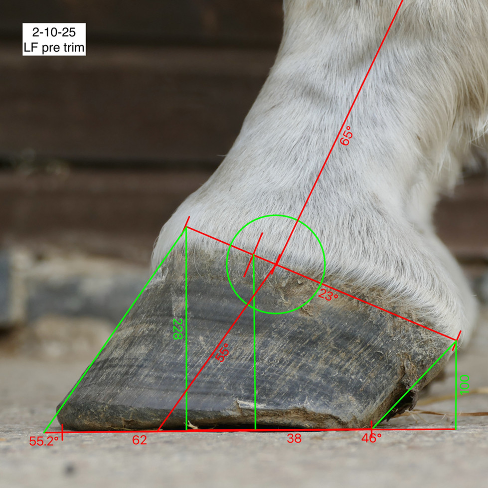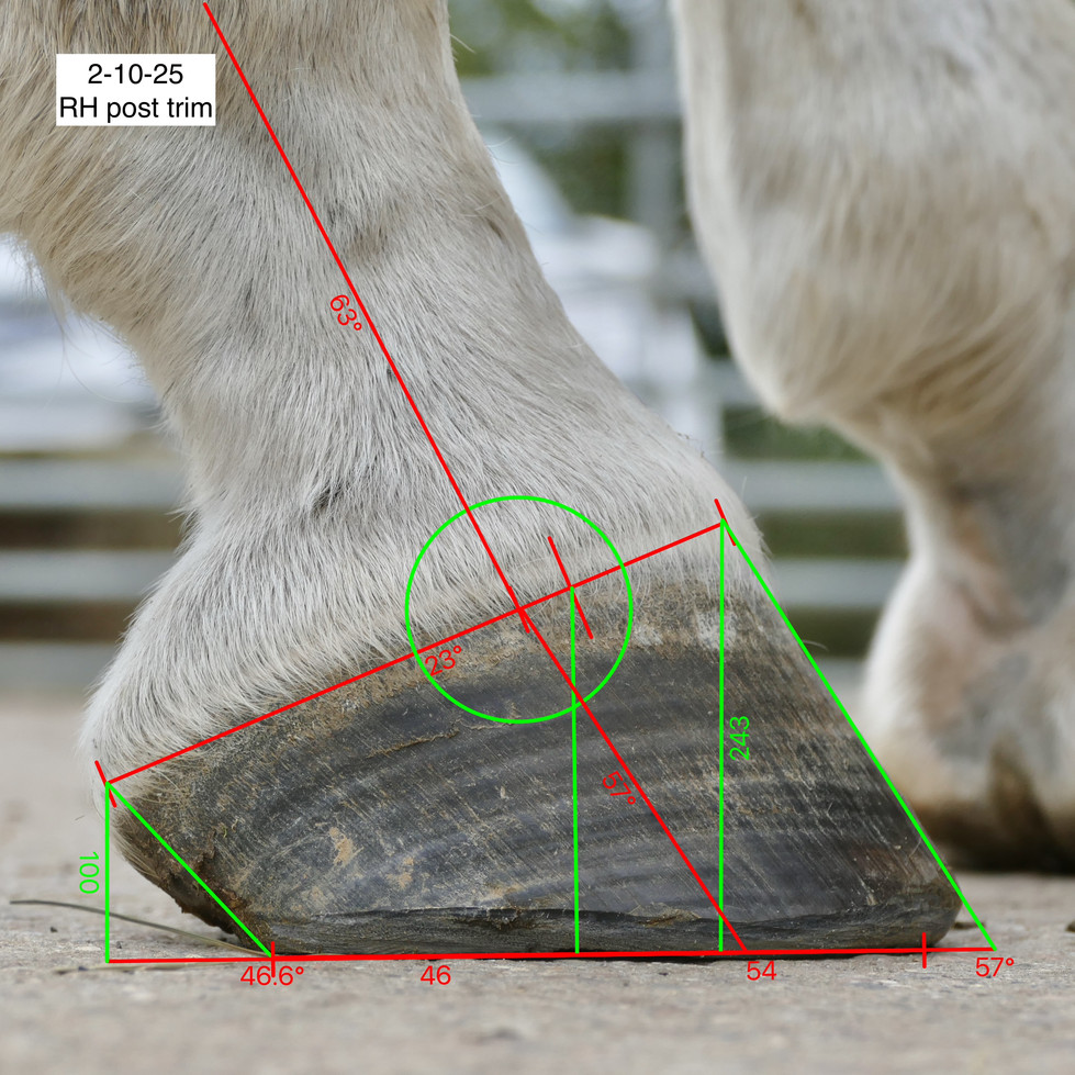 This is an equine podiatry follow up consult visit where I am checking, and if needed; readressing the trim, following hoof care provided by the owner who couldnt be present.